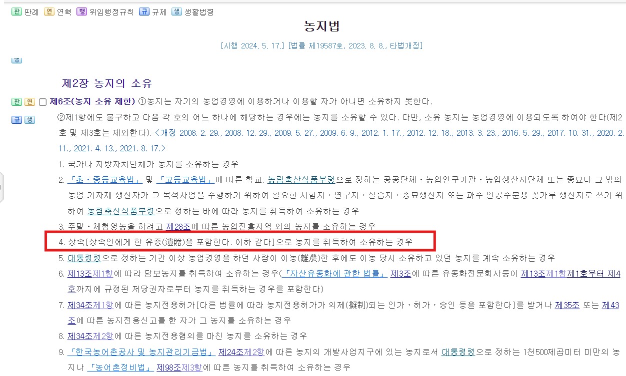 상속은 나의 의지와 상관없이 상속권에 의해 취득하게 되는 경우로, 농업인과 비농업인 모두 취득과 소유가 가능합니다.