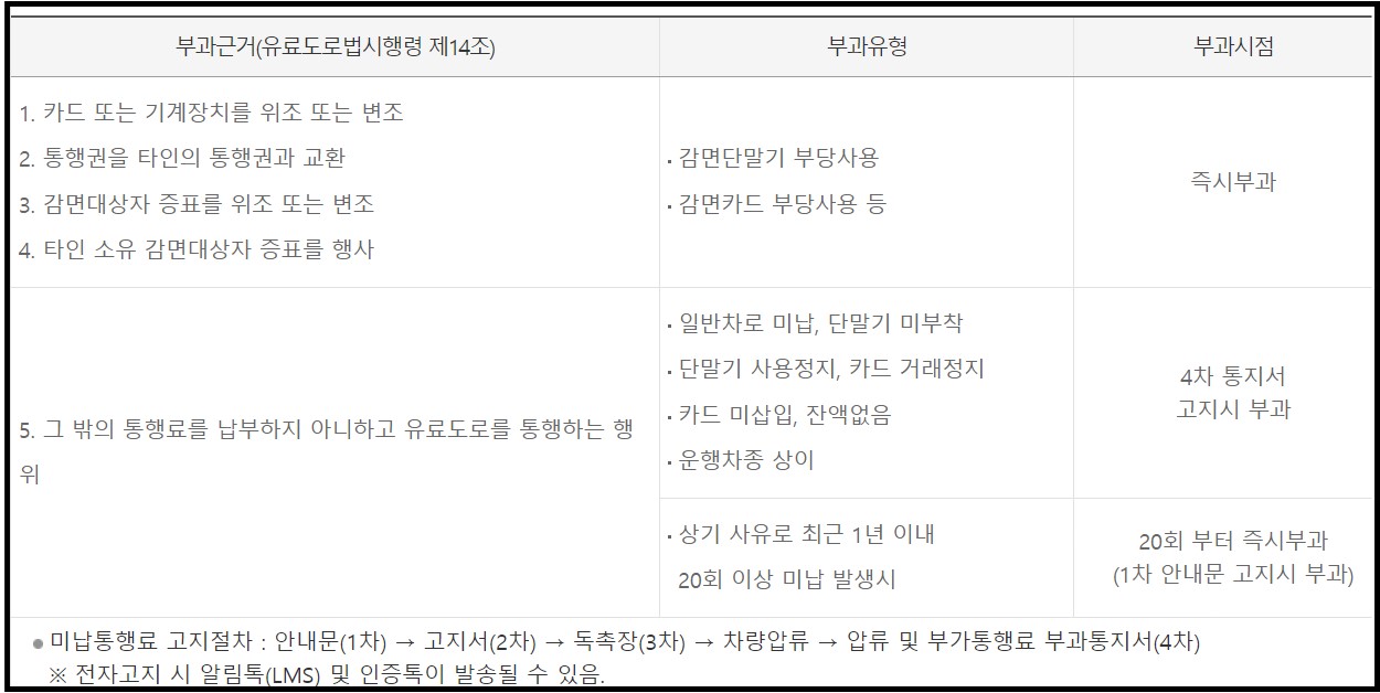 통행료 10배 부과되는 경우
