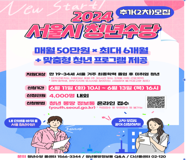 서울에서 아직 취업을 하지 않은 청년들이 진로를 준비하고 생활을 안정할 수 있도록 2024년 서울 청년수당 사업 2차 대상자를 추가로 모집합니다.